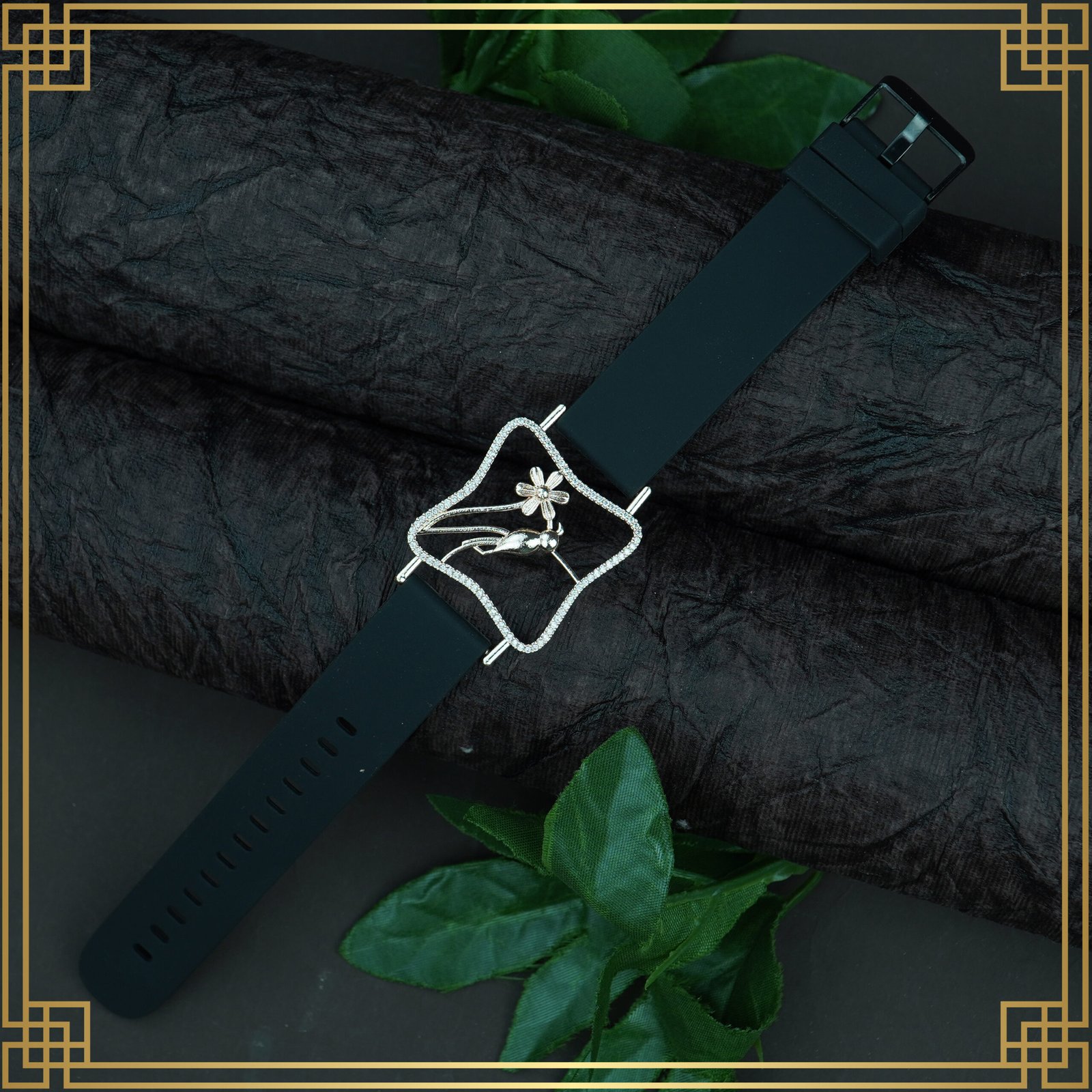 Dark Green Wrist Watch Style Rose Gold Plated Bracelet – Perfect Gift For Her