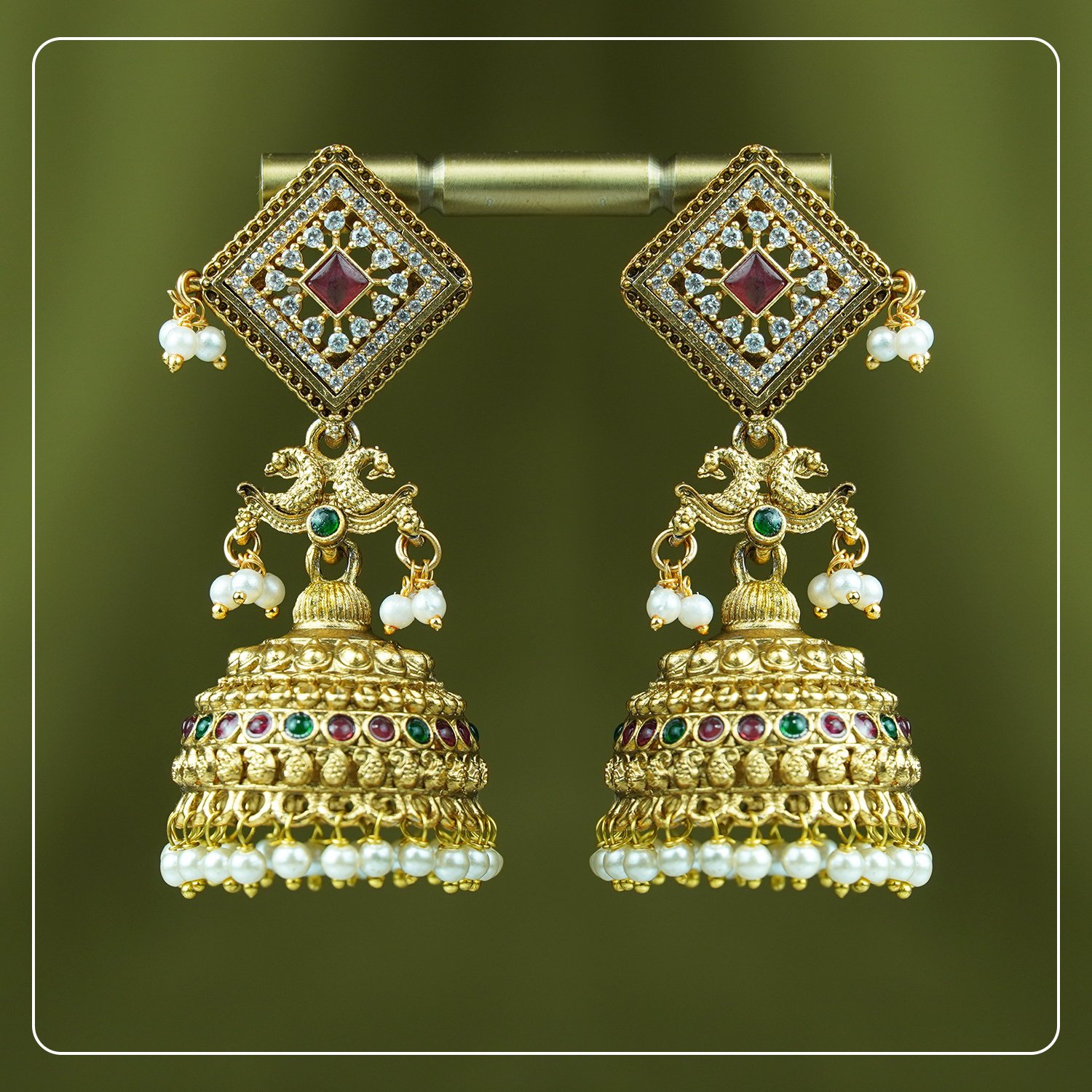 Elegant handcrafted earrings inspired by South Indian tradition, lightweight and comfortable.