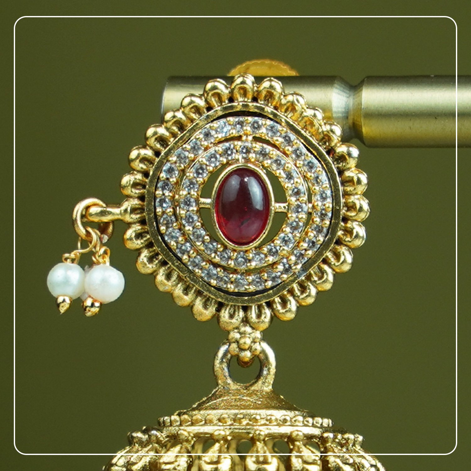 Elegant handcrafted earrings inspired by South Indian tradition, lightweight and comfortable.