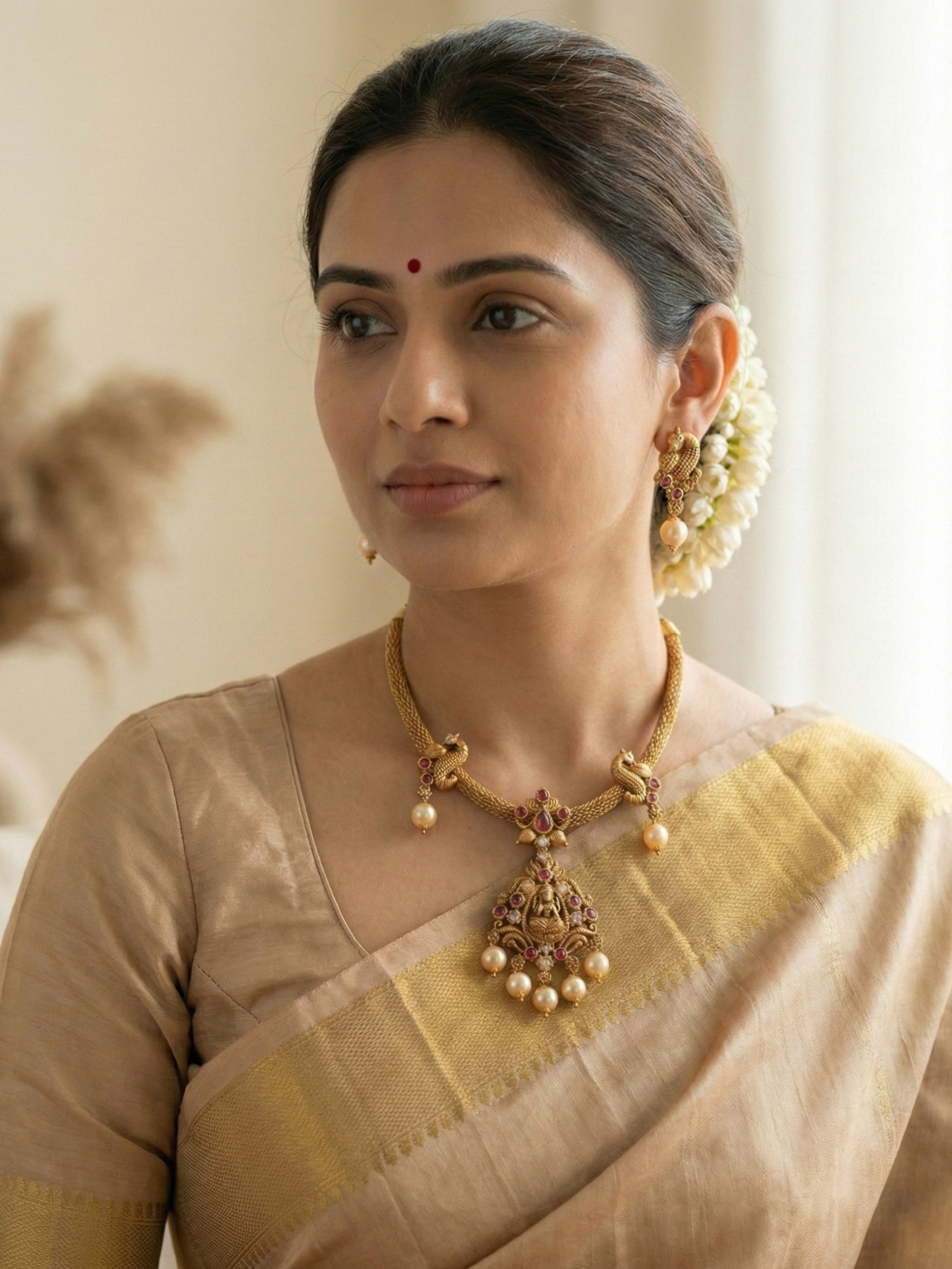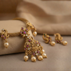 Pinak Jewel brings you the Grace of Lakshmi Necklace a simple yet premium piece that speaks elegance in every detail. Featuring a beautifully crafted Lakshmi design, this necklace is easy to style and perfect for any occasion, big or small. Whether you’re dressing up for a festive celebration or adding a touch of tradition to your everyday look, this timeless piece fits right in. Thoughtfully designed and effortlessly graceful its one you will reach for again and again.