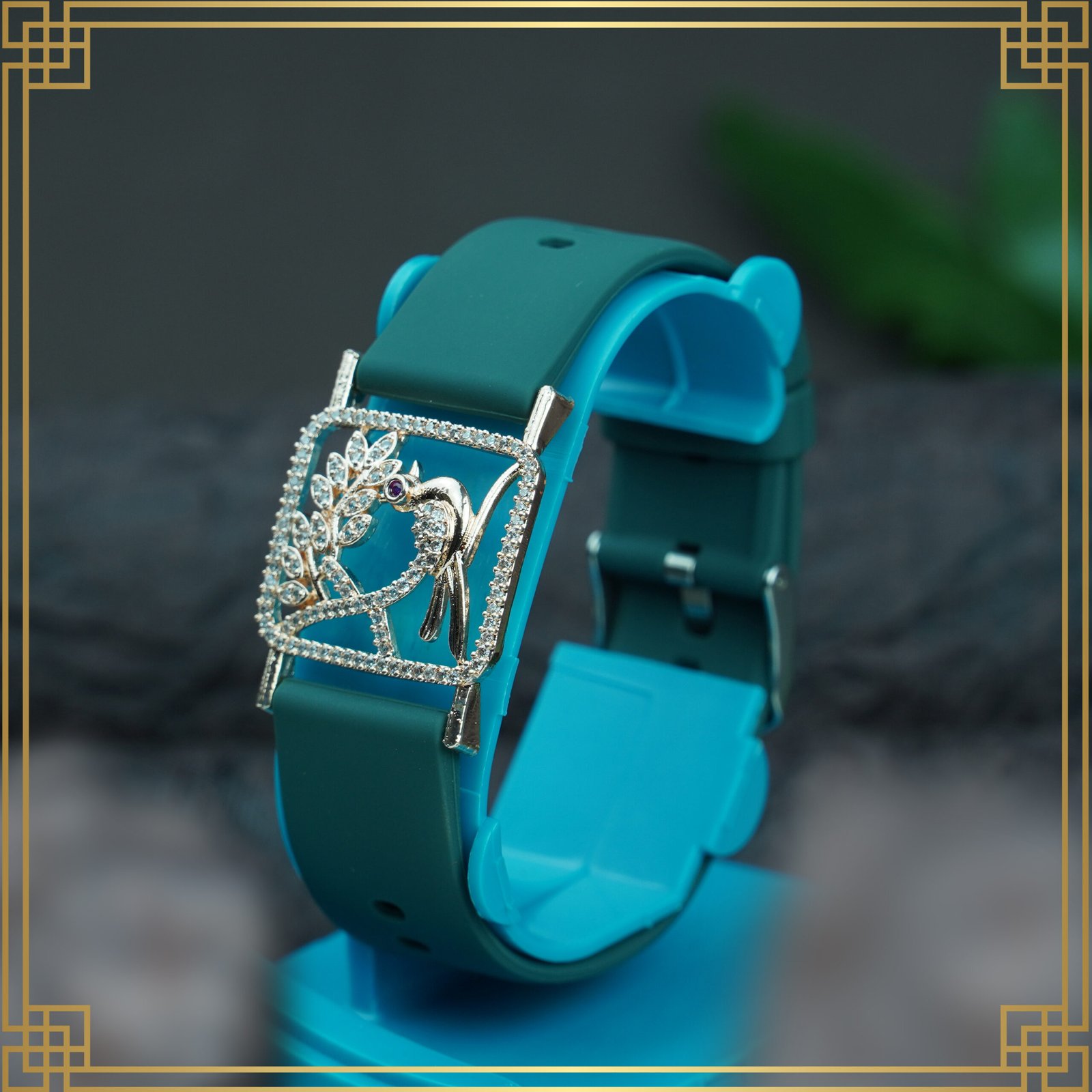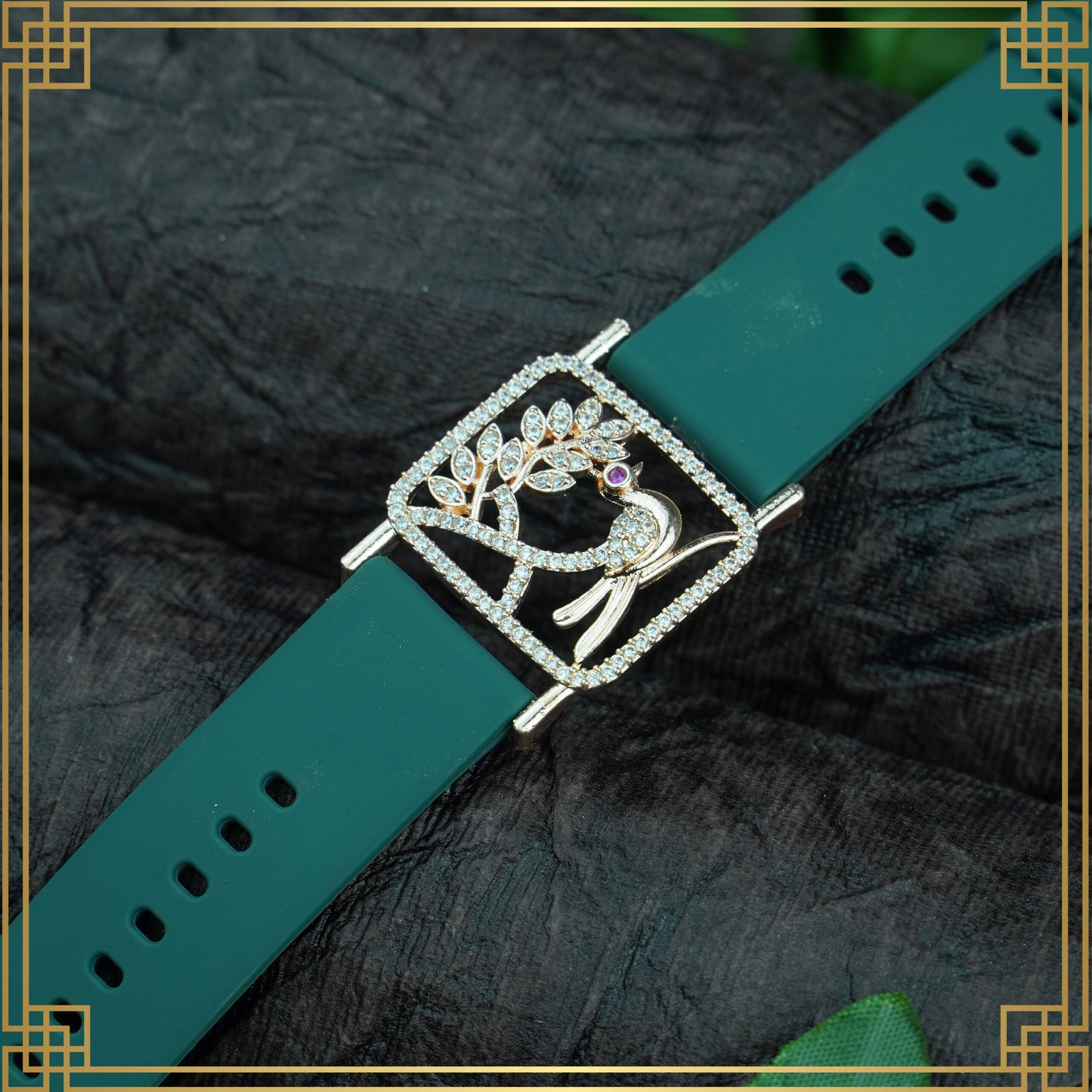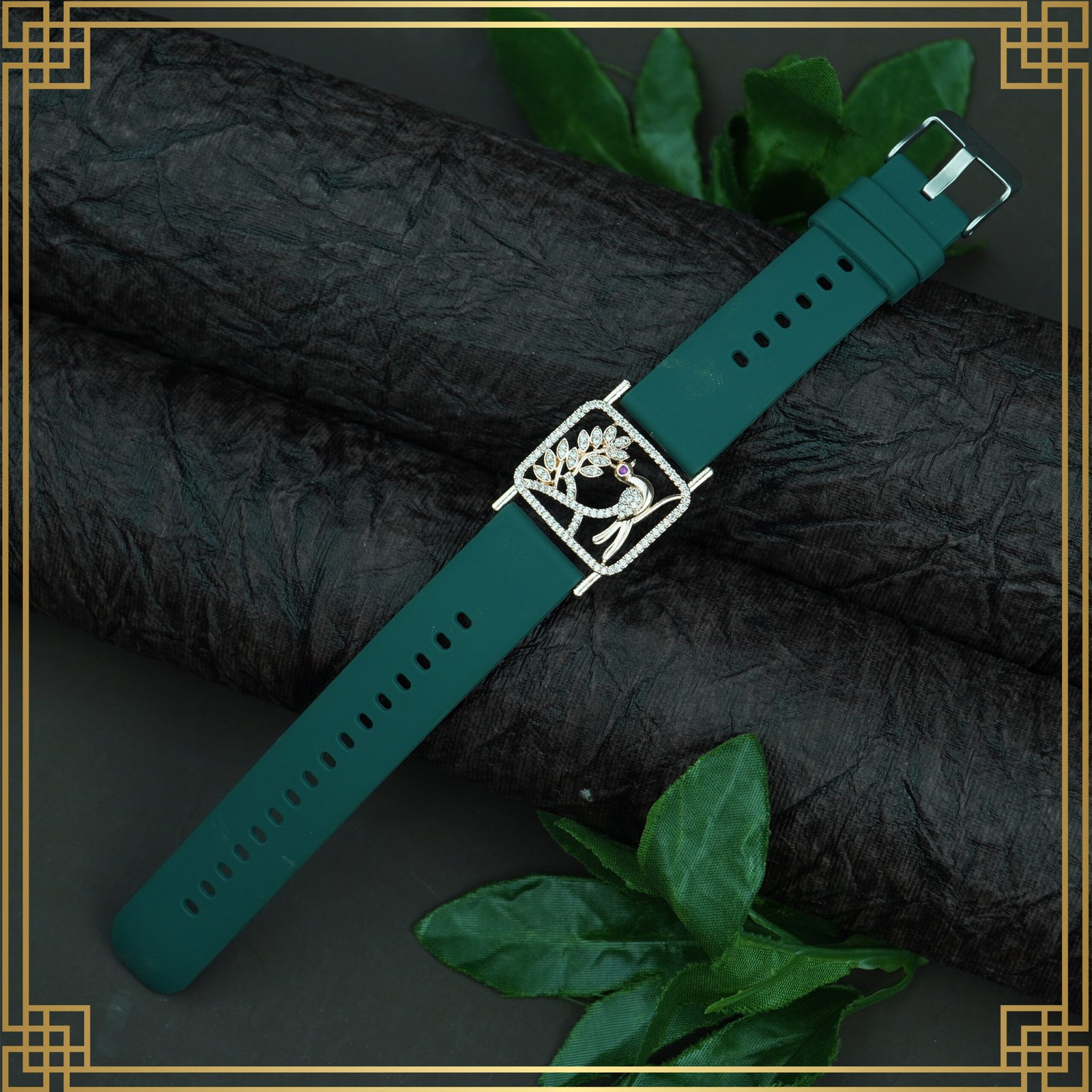 Green Wrist Watch Style Rose Gold Plated Bracelet – Perfect Gift For Her