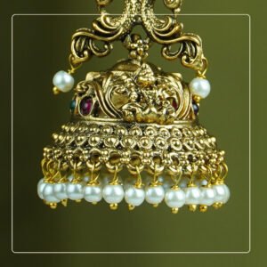 Design: Lakshmi motif at top, peacock in the center, intricately detailed Jhumka base