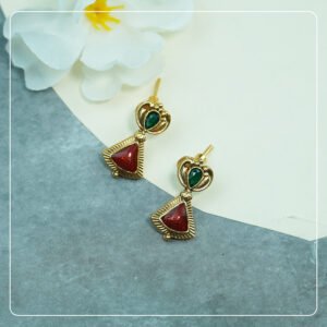 Temple-Inspired Design: Beautiful enamel Palakka work with intricate triangular motifs for a touch of heritage charm.