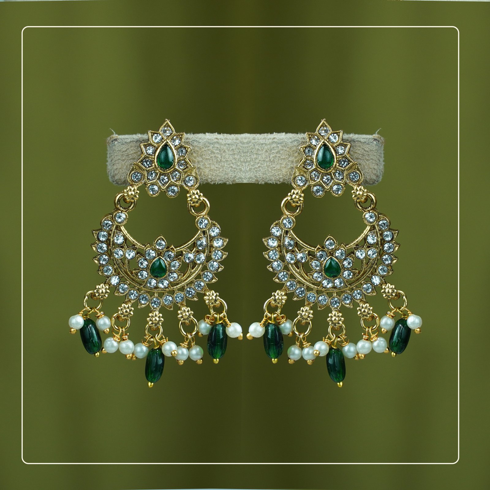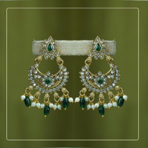 Design: Peacock-inspired pattern with glass stone detailing, festive yet modern