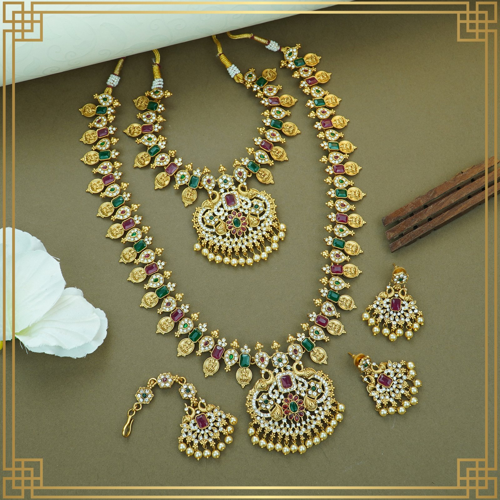 Beautifully crafted jewellery set with matching pieces for a complete festive look.